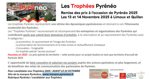 Découvrez-en plus sur cet évènement, et aussi comment candidater pour les Trophées Pyrénéo 2025 avant le 22 octobre prochain !
