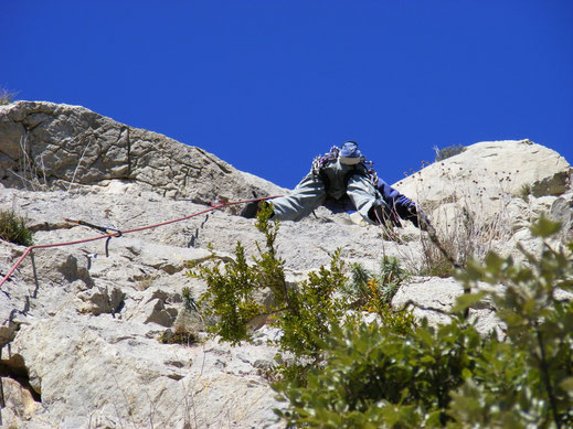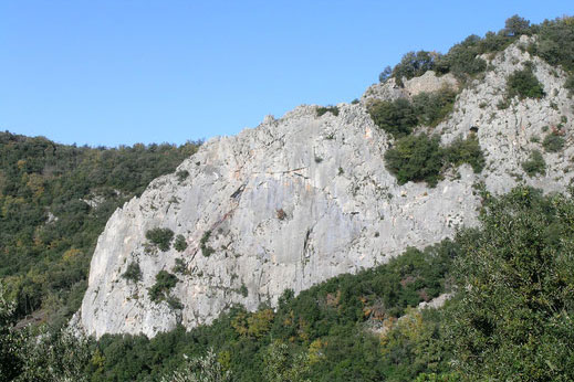 Accès : Au dessus Alet-les-Bains, garez vous au hameau de Saint-Salvayre. Redescendez la petite route goudronnée sur environ 200 mètres pour trouver sur la gauche le sentier d'accès qui descend jusqu'au pied de la falaise. Comptez environ 15 mn.