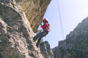 Situation :Importante dalle perpendiculaire à la rivière, accès par la tyrolienne T2.